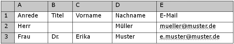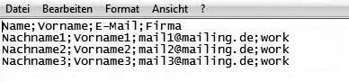Maybe you have already collected email addresses to which you want to send a newsletter. No matter in which database these information are stored – you only need to save them in a CSV file (for example with Excel) and import them LCC Newsletter-Tool. You can pack your CSV file as a zip to accelerate the uploading of large files. That's how it works:In the first line of the table, there should be field names – first name, surname, email address etc. An example: |