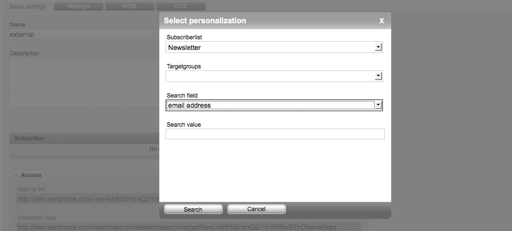 For this you have to chose the relevant subscriberlist and perhaps a targetgroup and a search keyword.