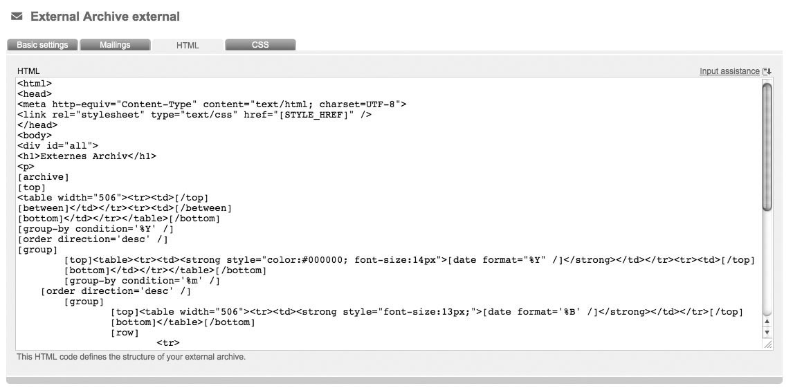While creating your external archive, LCC Newsletter-Tool generates an html source code in the background, which defines the structure of your external archive. If you want to edit the look of your shown archive, you have to edit the source code, which requires appropiate HTML knowledge.