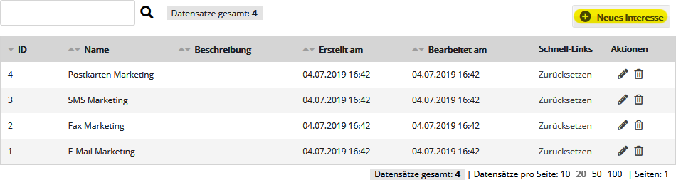- Interesse anlegen: Legen Sie ein oder mehrere neue Interessen an.