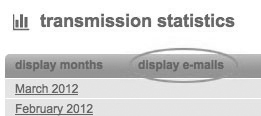 In the transmission- statistic you see the data collected from LCC Newsletter-Tool (Traffic, Total). Also you see, if exist, the numbers of test-sendings, clicks on the subsriber-link and the number of subscribers who have completed the optin-confirmation. Next to the view 'display months' you also can select 'display e-mails'. So LCC Newsletter-Tool outputs the above mentioned figures for each mailing.