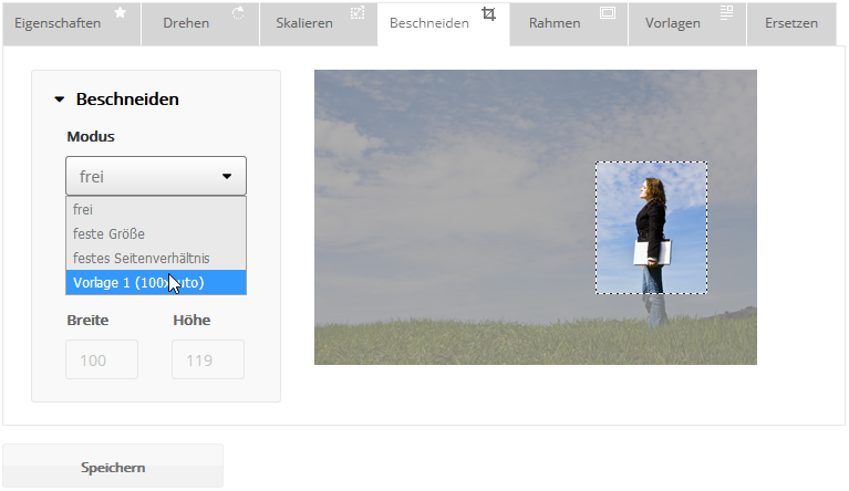 Mit dem Beschneiden-Modus können Sie die Größe Ihres Bildes beliebig anpassen. Ihnen stehen drei verschiedene Modi zur Verfügung: